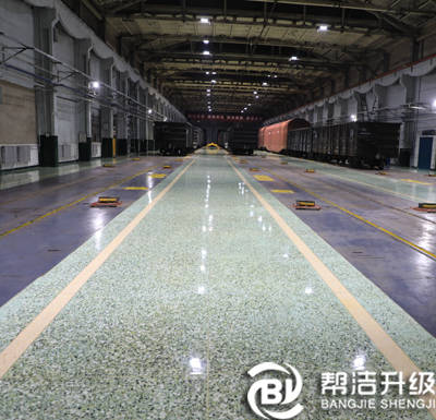 項目名稱:通遼車輛段水磨石地面防污抗?jié)B耐磨晶化工程;竣工時間: